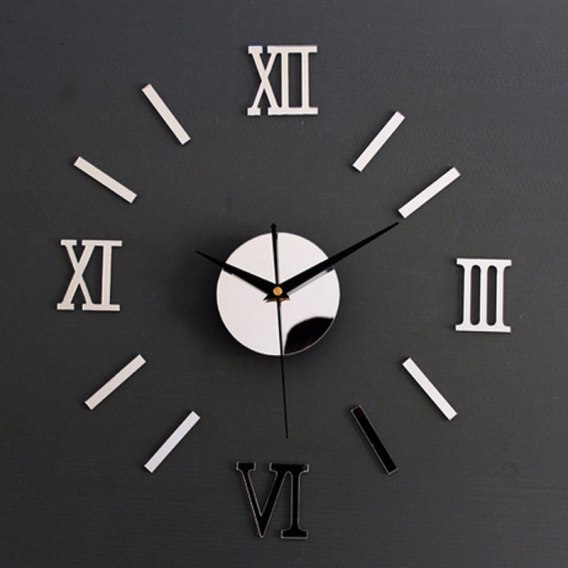 Zegar Ścienny naklejany DIY 3D regulowany rzymski srebrny 130cm