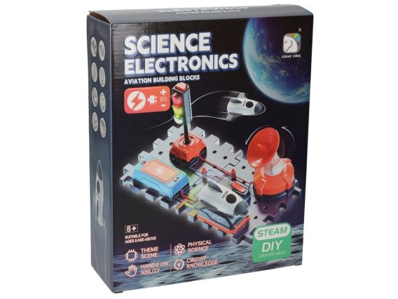 Zestaw przenosi naukę o obwodach elektrycznych z nudnej wiedzy do trójwymiarowego świata nieskończonych, kosmicznych przygód. Gdy dziecko wszystko prawidłowo połączy będzie miało możliwość uruchomić różne elementy bazy kosmicznej.